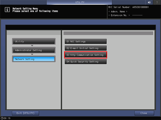 2. Press [Network Setting] on the [Administrator Setting Menu] screen, and then press [http Communication Setting].