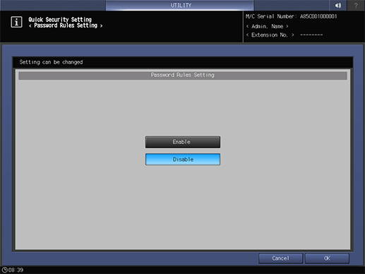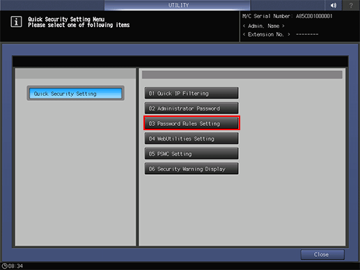 This setting is the same as that of [Quick Security Setting] - [Password Rules Setting] accessed from the [UTILITY] screen.
