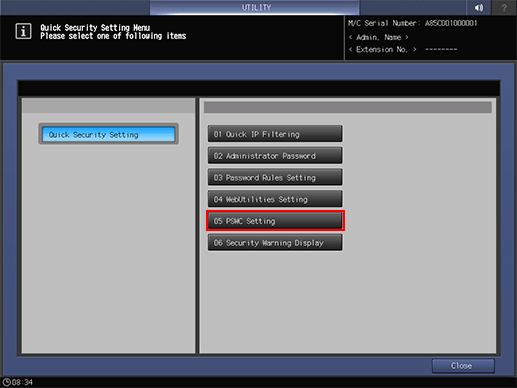 This setting is the same as that of [Quick Security Setting] - [PSWC Setting] accessed from the [UTILITY] screen.