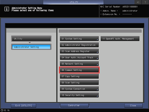 Press Common Setting on the [Administrator Setting Menu] screen.
