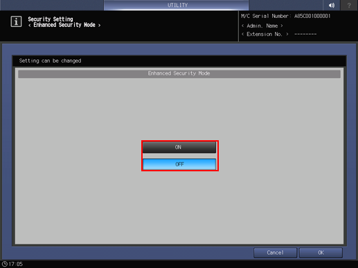 Enhanced Security Mode: Setting the Enhanced Security Mode (ON/OFF)