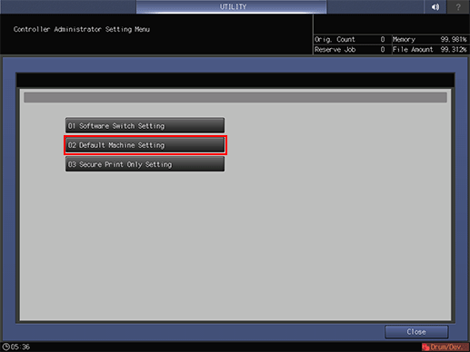 Return [Software Switch Setting] and [Controller] on the [MACHINE] screen to the factory default setting.