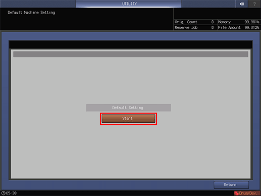 Pressing [Start] returns to the factory default setting. Please be especially careful with the use of this key.