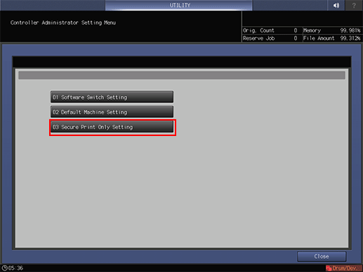 Follow the procedure on Controller Administrator Setting to display the [Controller Administrator Setting Menu] screen.