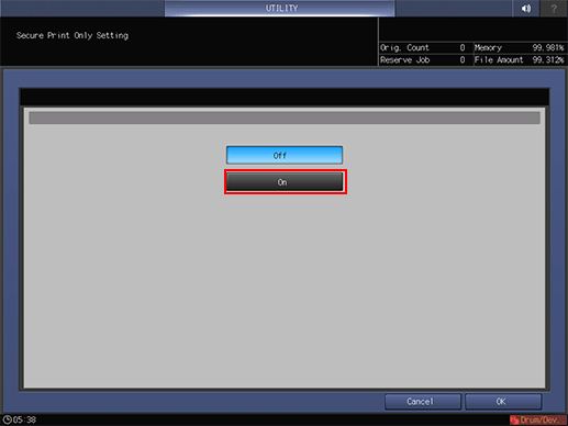 To cancel the change, press [Cancel]. In either case, the screen returns to the [Controller Administrator Setting Menu] screen.