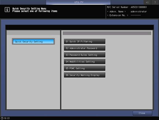 To return through the hierarchy of the Utility menu when you complete various settings, press [Close] until the desired screen appears.