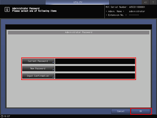 Press [Input Confirmation] to enter your new password once more, then press [OK].
