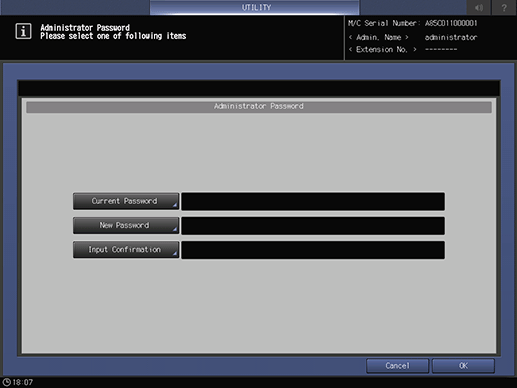 If a new password setting is completed, the administrator authentication function is automatically set to ON.
