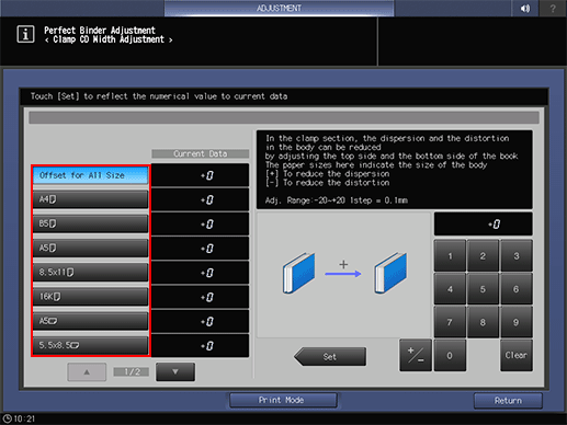 The screen returns to the [Perfect Binder Adjustment Menu] screen.