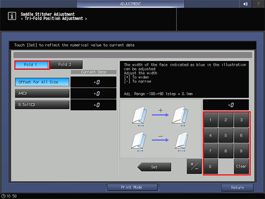 Select [Fold 1], and then use the touch panel keypad to enter the set value.