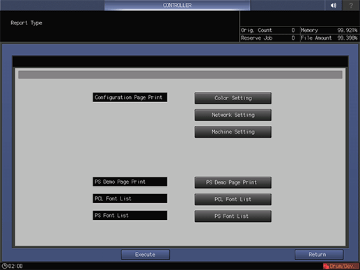 Network Setting,Machine Setting,PS Demo Page Print,PCL Font List,PS Font List