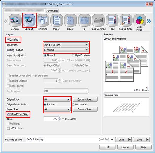 When setting in the printer driver, make sure that there are no previous settings left in each item in the tabs [Layout], [Finishing], [Cover], etc.