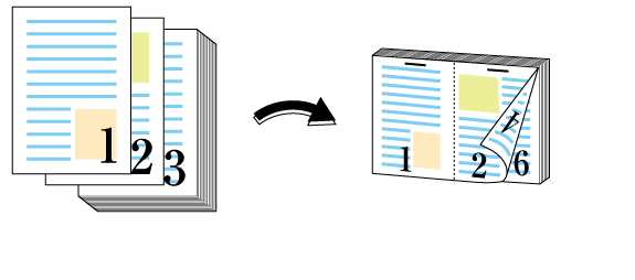This function prints the original on both sides of paper, and staples paper using the finisher. This section describes how to print with the same size as the original, and how to print by 2 in 1 (reduced size).