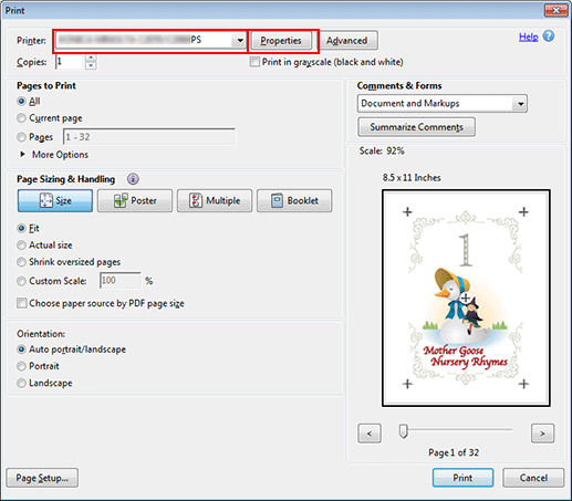 Open the original data with the application, and then click [Print] on the [File] menu.
