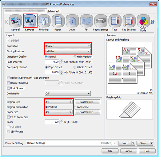 When setting in the printer driver, make sure that there are no previous settings left in each item in the tabs [Layout], [Finishing], [Cover], etc.