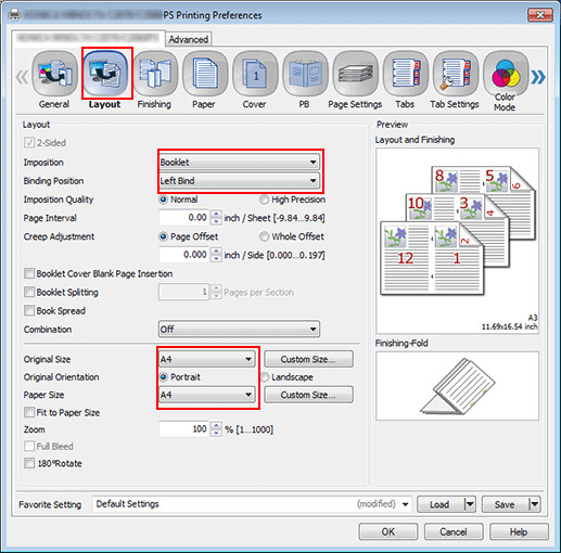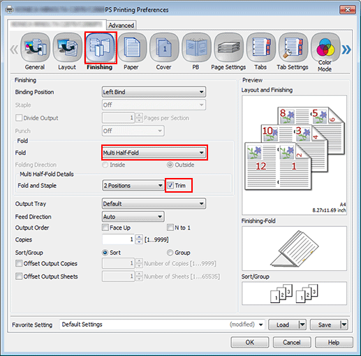 Click the [Finishing] tab, and then set [Fold] and [Multi Half-Fold Details].