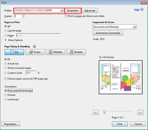 Select the printer to use for printing and click [Properties].