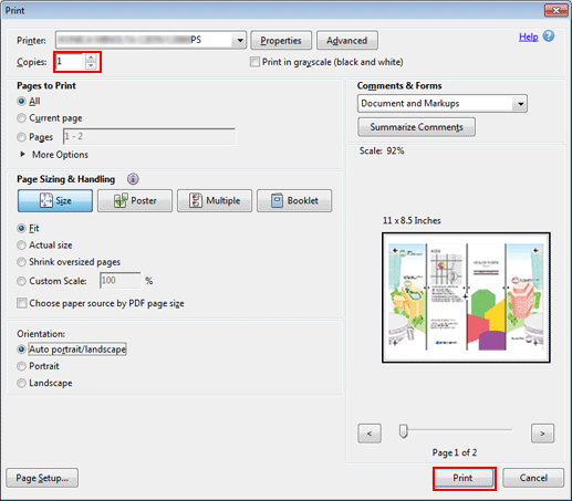 On the [Print] screen, enter the [Copies] and click [Print].
