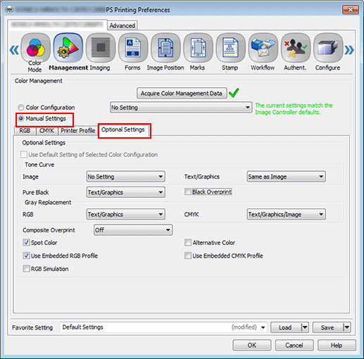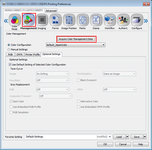 Click the [Management] tab, and then click [Acquire Color Management Data].