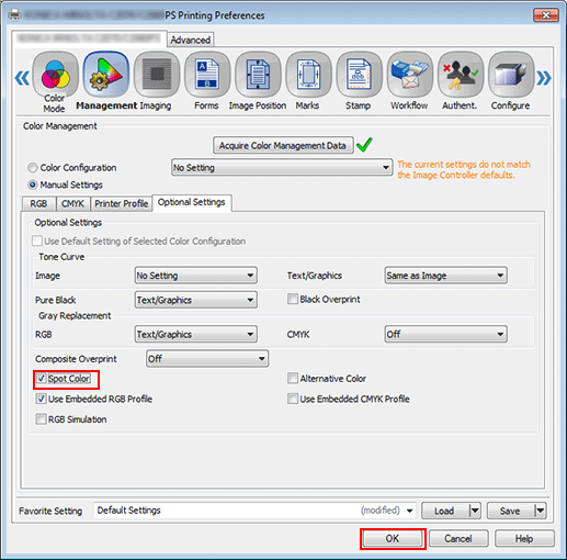 Click the [Management] tab, and then click [Acquire Color Management Data].