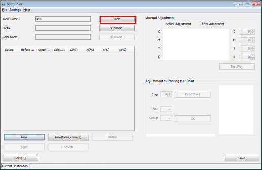 After checking the spot color table name, select a [Destination Folder] and click [Save].