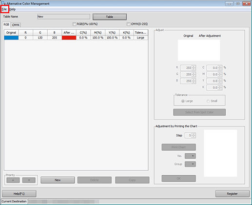 6. Set the color values for [Original] and [After Adjustment] under [Adjust], and click [Register].