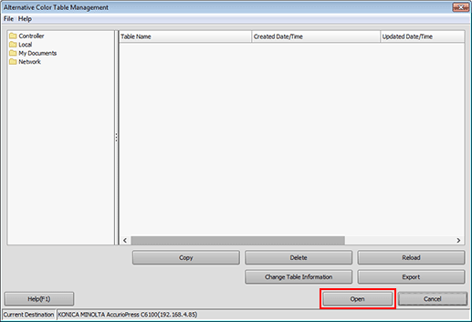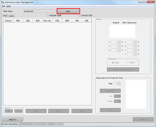 The [Alternative Color Table Management] screen is displayed.