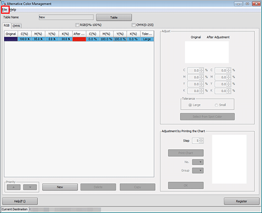 7. After checking that the alternative color is registered, close the screen by selecting [Close] from the [File] menu.