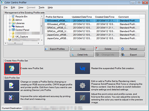 Select a folder from the left side, and then select a CMYK target profile from the list on the right side. Click [OK].