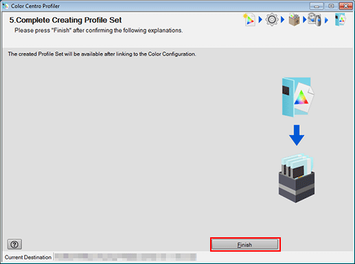 The message, [Calculating] is displayed, followed by the message, [Printer profile calculation complete] is displayed.