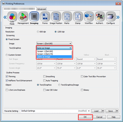 Select a screen for [Text/Graphics], and click [OK].