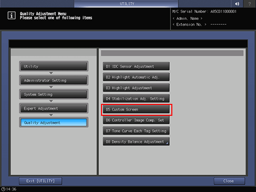 Example: The following shows an example of a default screen. The selectable screen types can be changed by the administrator from the [UTILITY] menu. The available screen types may also vary depending on the image controller.