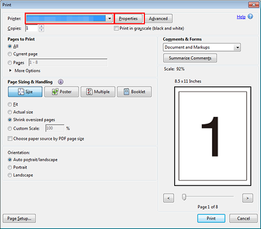 Open the original data with the application, and then click [Print] on the [File] menu.