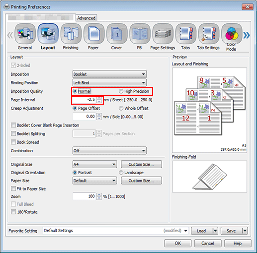 Select [Normal] or [High Precision] in [Imposition Quality] and then enter the adjustment value.