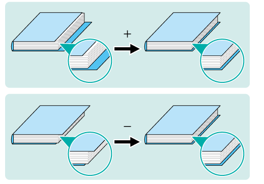 In perfect binding, you can adjust the lead edge position of the left cover page with reference to the body set.