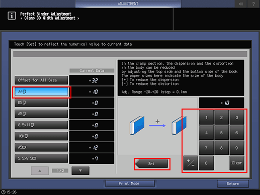Home Adjust the output resultPerfect Binding: Adjusting the Clamp CD Width