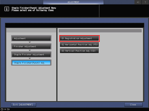 Press [Registration Adjustment] on the [Staple Finisher (Punch) Adj.].