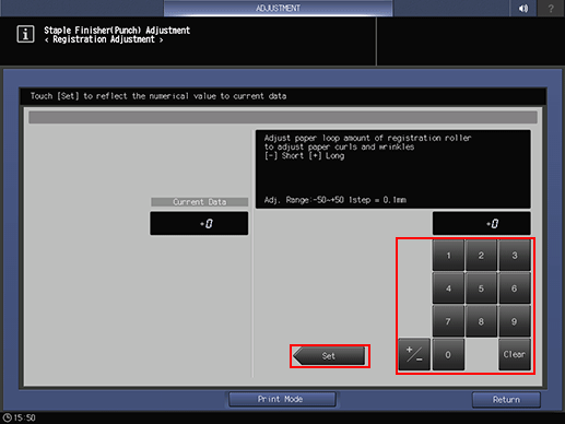 Current Data | Decreasing the amount of paper loop of the registration roller by 2.5 mm (-25)