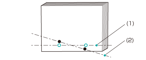 Check the tilt of desired punch hole position (1) and the current punch hole position (2).