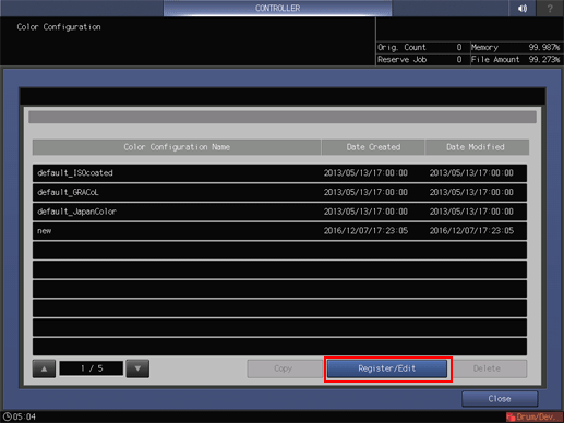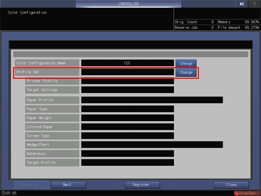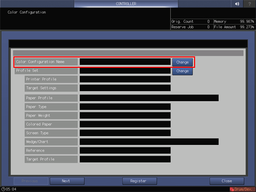 5. Press [Change] of [Color Configuration Name], and then create a name of a color configuration.