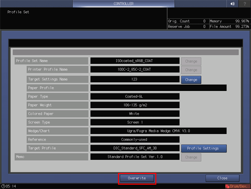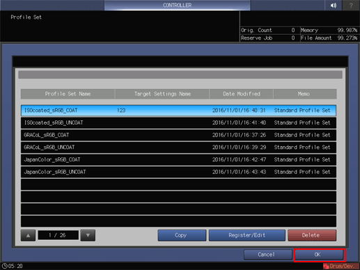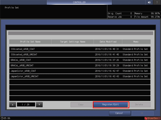 Associate the created target setting with a profile set, and create a color configuration. This section describes how to use an existing profile set.