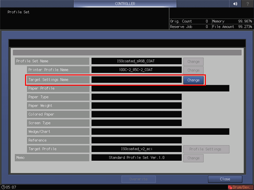 9. Press [Change] of [Target Settings Name], and then select the target setting that you created in Creating a Target Setting.