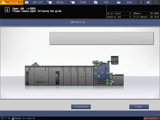 17 | Finisher FS-531/Finisher FS-612, Post Inserter PI-502, or secondary (sub) tray section |