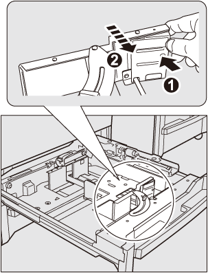 To slide the rear guide plate to the right, hold the top as illustrated, and slide the rear guide plate while pressing it down slightly.