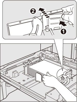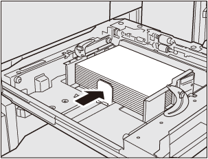 Do not load more than 500 sheets (80 g/m2 / 21 lb Bond) in tray 1 (upper tray), or more than 1000 sheets (80 g/m2 / 21 lb Bond) in tray 2 (lower tray). Also, do not load paper above the limit indicated on the side guide plate. Otherwise, a paper jam may be caused. Forcibly pushing the tray into the main body with paper loaded close to the limit may misalign the paper stack. Gently push the tray into the main body.
