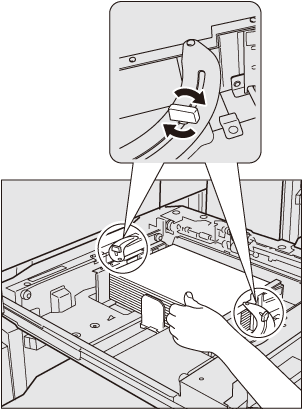 Turn the guide fixing knobs(2 pieces on front and rear side) counterclockwise to loosen them.