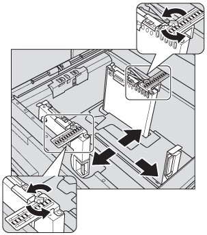 Turn the two guide fixing knobs of the side guide plates clockwise to fix the guides.