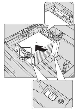 Place about 100 sheets of paper with the print side up. While pushing the lock release lever of the front side guide plate, align both side guide plates to the paper and position them according to the paper size indicator provided on the guide holding plate.