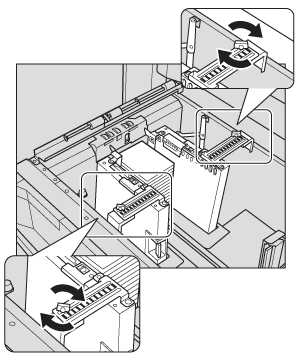 Turn the side guide fixing knobs of the side guide plates clockwise to fix the guides.