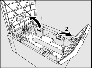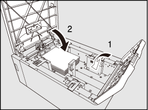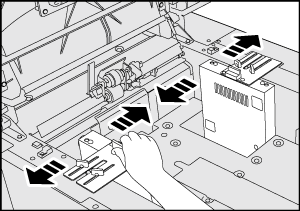 Turn the four guide fixing knobs of the side guide plate (left) clockwise to fix the guides.